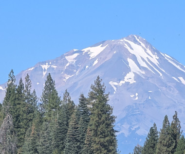 Then around Mt Shasta on the south side. Stopped at Fowler Cr CG on the McCloud River. This is where the McCloud River Falls are, three of them. We took the short hikes into the falls. Beautiful country in the northern Sierras. Even had some views of Shasta from the south.